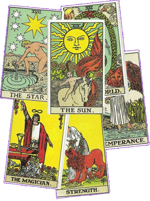 - Kaart 10 - Het uiteindelijke resultaat, het definitieve antwoord. Dit is de conclusie, de uiteindelijke oplossing voor de gestelde vraag. Het is het resultaat van alle krachten die door de andere 9 kaarten van de Arcana zijn belicht. Het is de toekomst die nog niet is geschreven.